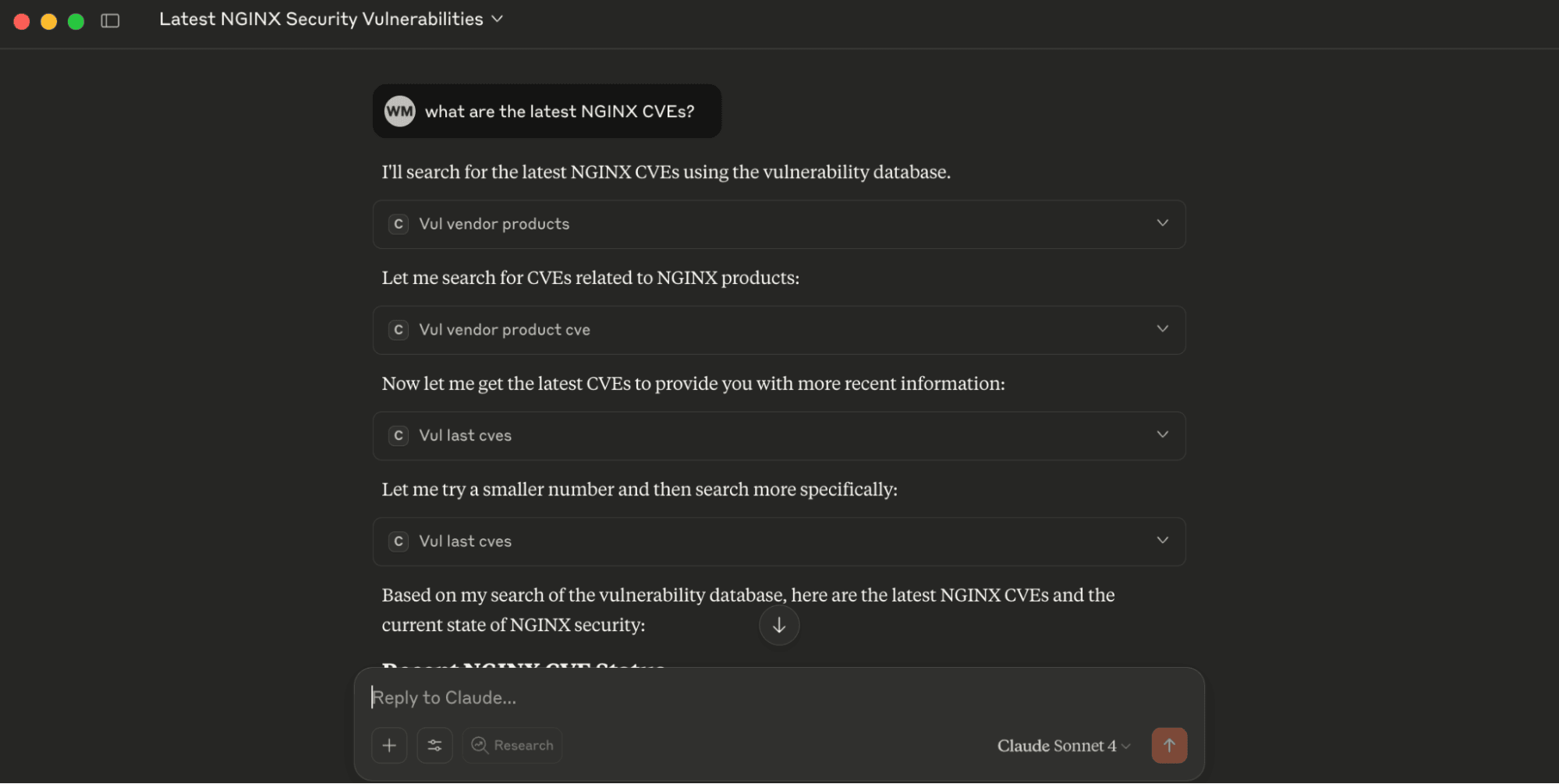 The CVE-Search MCP Server connects LLMs to the CVE-Search API, a public API that provides access to a local database of known cybersecurity vulnerabilities. With the server, users can browse vulnerabilities by vendor and product and stay up to date with the latest CVEs.